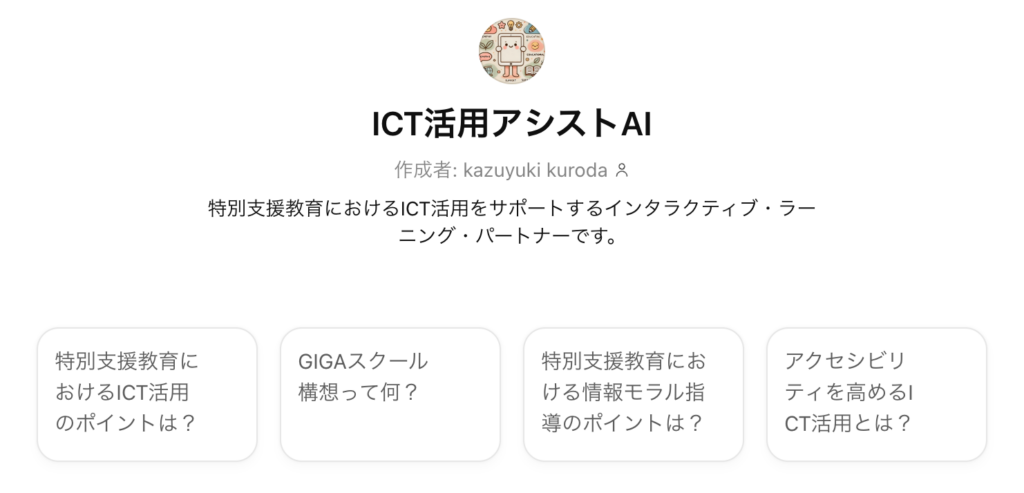 こんにちは。特別支援教育におけるICT活用サポートAIです。