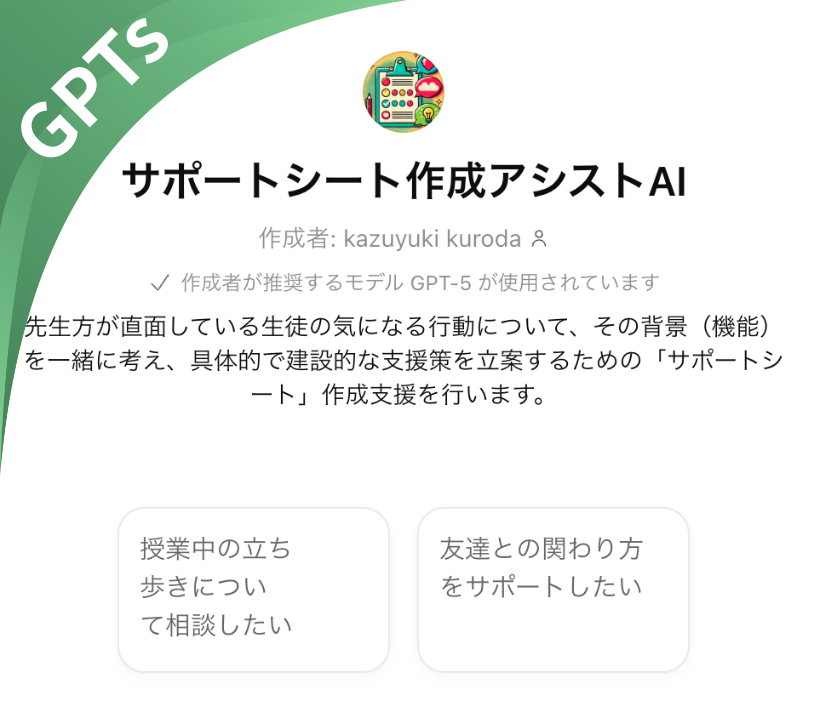 武井先生が作った「サポートシート」を使うといいよ!このAIはサポートシートの作成をアシストしてくれるんだ。